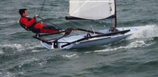 En jaune, le réglage du point d’écoute de grand voile, en violet, le Cunningham.